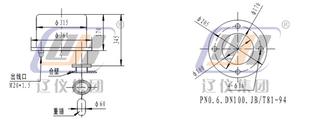UL-3型物位開關采用擺復式傳動系統。擺動軸的軸端對稱掛有重錘及配重砣。無物料時,重錘失重,彈簧拉力克服了配重砣的重力使軸靜止,電機使測量撥叉張開動作,微動開關動作,發出料面信號;若物料夾住重錘下行,亦可使拔叉張開動作,發出料面信號,同時限位座靠在底板上,限制重錘繼續下行,使儀表內部免受沖擊及拉力,切斷電機電源。
